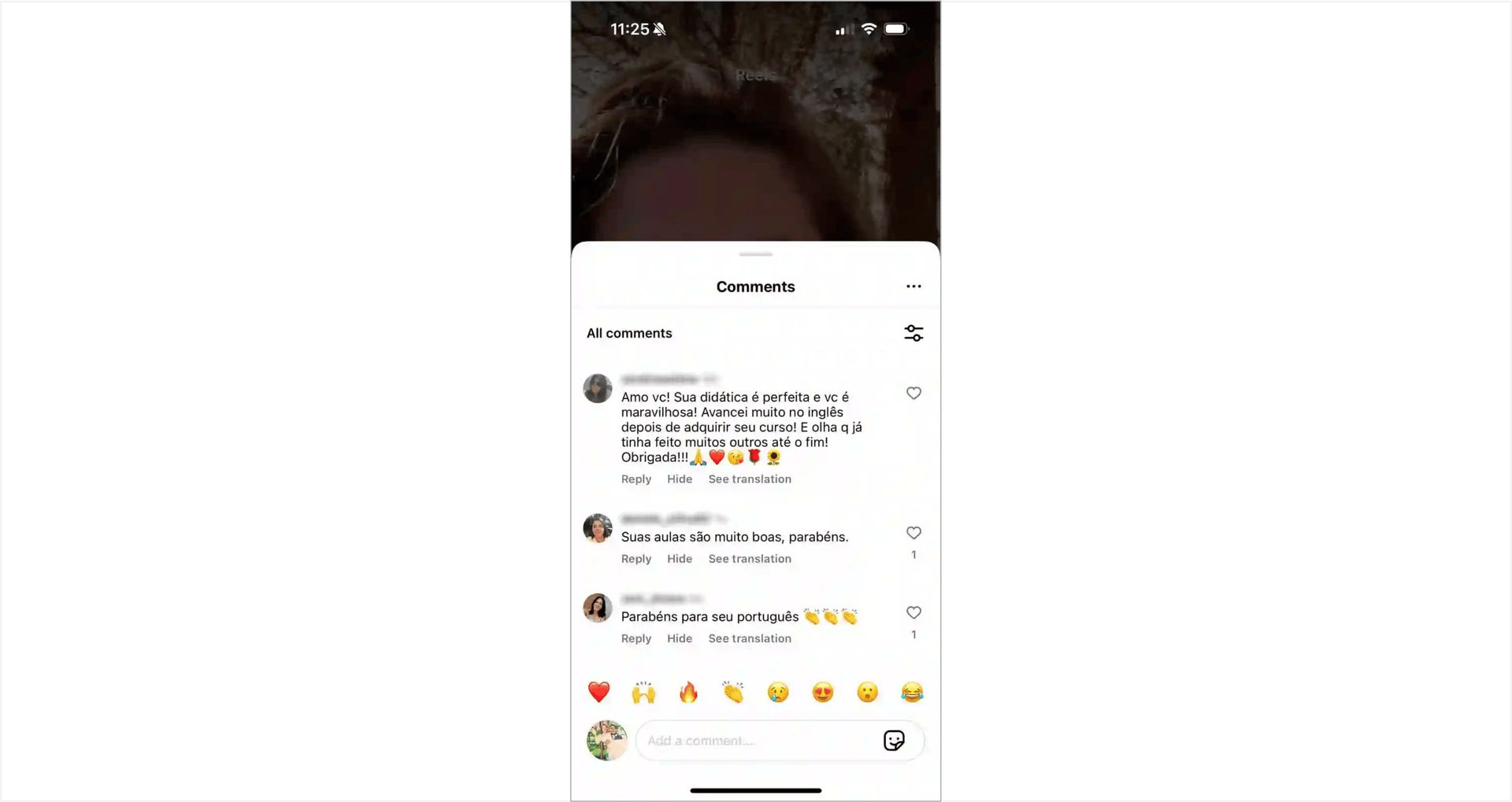 "Estou gostando muito das aulas, comecei tem uma semana."